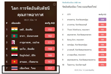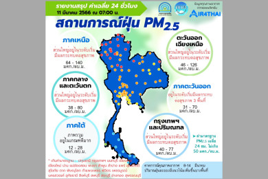เช้านี้!! PM2.5 พุ่งสุดในไทยที่สามพราน นครปฐม ด้าน"เชียงใหม่"ติดที่ 7 เมืองอากาศแย่ของโลก
