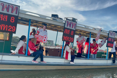 ปทุมธานี ผู้สมัครส.ส.เขต 2 พรรคเพื่อไทย ลงเรือหาเสียงโค้งสุดท้ายริมสองฝั่งแม่น้ำเจ้าพระยา