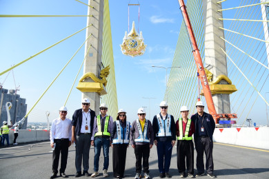 คมนาคม ตรวจเยี่ยมติดตั้งป้ายชื่อสะพานทศมราชัน และตราสัญลักษณ์งานเฉลิมพระเกียรติพระบาทสมเด็จพระเจ้าอยู่หัว