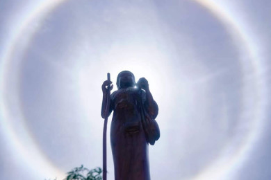 สมุทรสาคร เกิดเหตุอัศจรรย์ "พระอาทิตย์ทรงกลด สวยงามมาก"