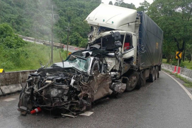 ระทึก! ถนนลื่นจากพายุ “วิภา” รถบรรทุกชนกระบะ 5 คัน ที่สังขละบุรี ดับ 3 เจ็บหลายราย