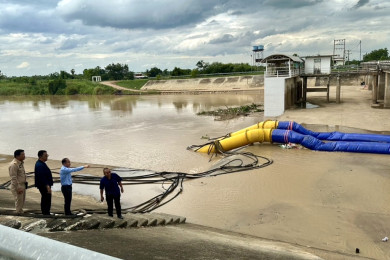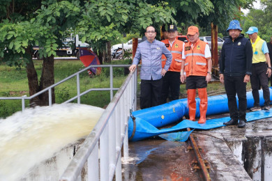 สกลนคร รับมือพายุวิภา ติดตั้งเครื่องสูบน้ำ ที่ ปตร.บ้านหนองบึง ดันน้ำออกจากหนองหาร