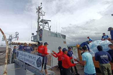 ทัพเรือภาคที่ 3 ใช้เรือรบฝ่าคลื่นสูงขนเสบียงถุงยังชีพ น้ำดื่มและยารักษาโรค ช่วยชาวเกาะบุโหลนดอน–บุโหลนเล
