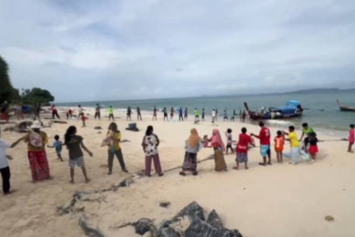 สตูล ชาวเลเกาะบุโหลน ช่วยกันขนเสบียงที่ ศรชล.นำเรือรบหลวง ต.114 กองทัพเรือภาค 3 ฝ่าคลื่นลมเข้าเทียบท่า
