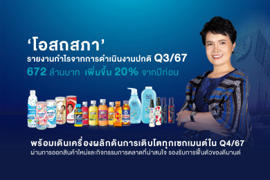 "โอสถสภา" เผย Q3/67 กำไร 672 ล้านบาท เพิ่มขึ้น 20% ผลักดันการเติบโตทุกเซกเมนต์ใน Q4/67