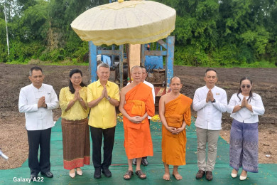 พ่อเมืองตาก-นอภ.แม่สอด ประธานพิธีลงเสาเข็มทองปฐมฤกษ์ สร้างองค์พระปรางค์ศรีรัตนมหาธาตุ เพื่อถวายพระราชกุศล