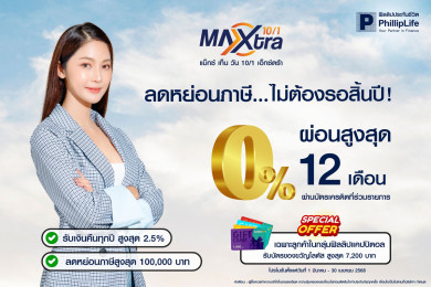 ฟิลลิปประกันชีวิต ส่งแคมเปญ ต่อยอดโบนัสให้เติบโต กับ “ประกันลดหย่อนภาษี ผ่อน 0% นานสูงสุด 12 เดือน”