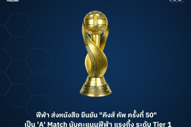 "ฟีฟ่า" ส่งหนังสือ ยืนยัน "คิงส์ คัพ ครั้งที่ 50" เป็น "A" Match นับคะแนนฟีฟ่า แรงกิ้งระดับ Tier 1