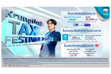 พลิกเรื่องภาษีเป็นเรื่องง่าย Krungthai Tax Festival 2024 กรุงไทยคัดมาครบ กองทุนและประกันช่วยวางแผนสิทธิลดหย่อนภาษีช่วงปลายปี