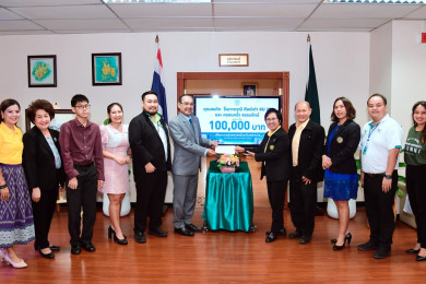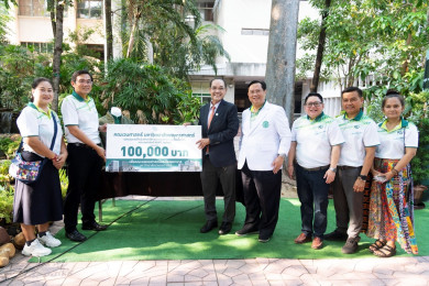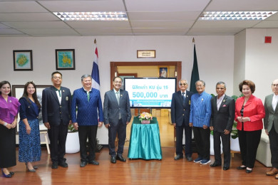 สมาคมนิสิตเก่ามหาวิทยาลัยเกษตรศาสตร์ฯ และ ม.เกษตรศาสตร์ มอบเงินรายได้หลังหักค่าจัดโครงการเดินวิ่งการกุศล KU RUN 3 สมทบสร้างโรงพยาบาล มก.