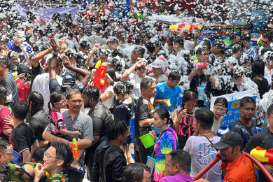 นักท่องเที่ยวไทย-มาเลเซีย ออกมาเล่นน้ำสงกรานต์ย่านถนนคนเดินกลางเมืองหาดใหญ่เนืองแน่น