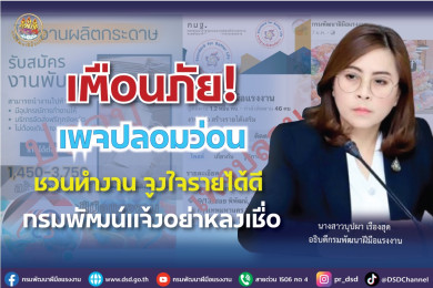 "กรมการจัดหางาน" เตือนอย่าหลงเชื่ออ้างชื่อ "กรมการจัดหางานแห่งประเทศไทย" ย้ำเป็นเพจปลอม ลั่นดำเนินคดีถึงที่สุด