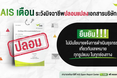 AIS เตือนระวังมิจฉาชีพปลอมแปลงเอกสารบริษัท ยันไม่มีนโยบายแจ้งการดำเนินธุรกรรมเกี่ยวกับเลขหมายทุกรูปแบบในทุกช่องทาง