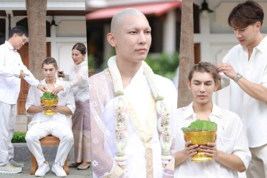 "มิว ศุภศิษฏ์" ปลงผมบวชนาค ก่อนเข้าพิธีอุปสมบท รับฉายา"ปุญญวัฑฒโน ภิกขุ"