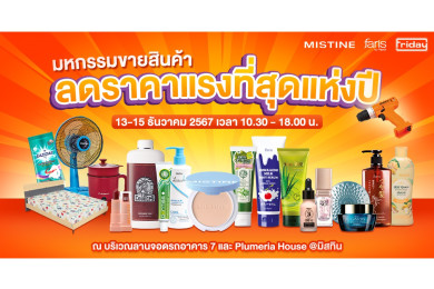 "มิสทิน" ร่วมกับฟรายเดย์จัดใหญ่!!! “มหกรรมลดราคาสินค้า” ขนทัพสินค้าลดแรงที่สุดแห่งปี