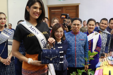 "มิส ยูนิเวิร์ส" สุดประทับใจ กระเป๋าแฟชั่นผ้าคราม งานศิลปาชีพนาหว้า