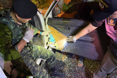 ทหาร ฉก.ลาดหญ้า กกล.สุรสีห์ รวบหนุ่มขับกระบะอ้างพาแฟนสาวไปโรงพยาบาล ค้นเจอยาบ้า 9,999 เม็ด