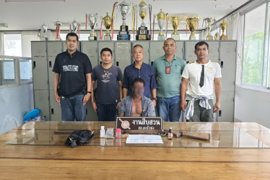 ตำรวจชุดสืบสวนสภ.ตะกั่วทุ่ง พร้อมผู้ใหญ่บ้านบุกรวบหนุ่มใหญ่ของกลางยาบ้าพร้อมอาวุธปืน