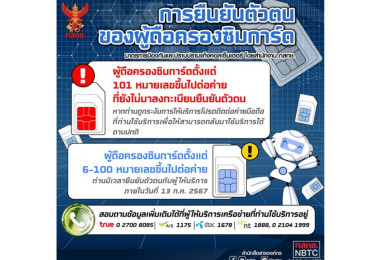 สกัดแก๊งคอลเซ็นเตอร์ กสทช.จัดระเบียบซิมการ์ดถือครองเกิน 5 ซิมต้องยืนยันตัวตนผู้ครอบครอง ดีเดย์ ม.ค.67