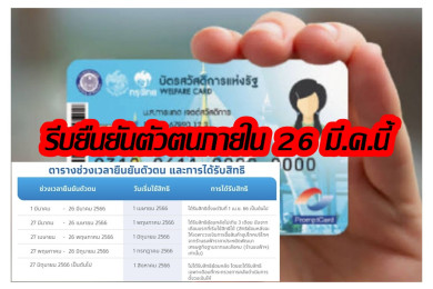 ยืนยันตัวบัตรสวัสดิการแห่งรัฐแล้ว 13 ล้านราย หรือ 89.43% รีบก่อน 26 เม.ย.ใช้ได้ 1 พ.ค.66 รับสิทธิย้อนหลังทันที