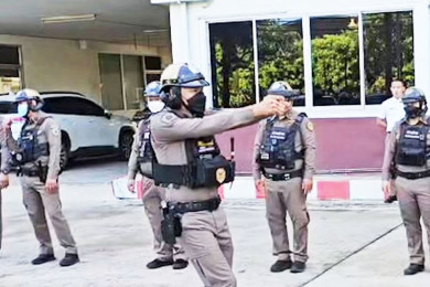 ตร.มหาชัย เสริมทักษะจนท.ฝึกซ้อมยุทธวิธีใช้อาวุธปืนสั้น ป้องกันเหตุร้าย