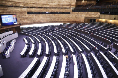 "จนท." นำป้าย "พรรคก้าวไกล" ออกจากห้องประชุมสภาฯแล้วหลังศาลรัฐธรรมนูญมีมติยุบพรรค