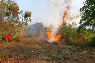 ปลัดอาวุโสอำเภอเมืองยโสธร ลงพื้นที่บัญชาการสกัดไฟไหม้ลามทุ่ง จัดเวรเฝ้าระวัง 24 ชม.