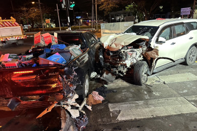 ชนกันสนั่นกลางแยกอวนิว ถนนเกษตร-นวมินทร์ บาดเจ็บ 4 ราย รถเสียหายหนัก