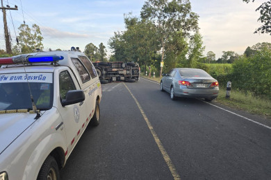 ลำปาง สลด!! รถบรรทุก 10 ล้อ เบรกแตก พุ่งชนด่านชั่งน้ำหนัก ภรรยานั่งมาด้วยเสียชีวิตคาที่