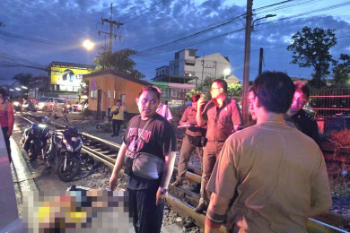 รถไฟมหาชัย-วงเวียนใหญ่เฉี่ยวชนมอเตอร์ไซค์ หนุ่มสงกรานต์บาดเจ็บสาหัส ใกล้แลนด์มาร์คมหาชัย