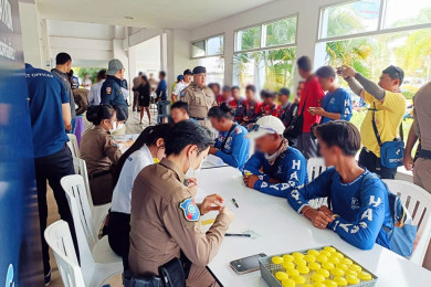 ตร.ท่องเที่ยวระยอง ตรวจปัสสาวะคนขับเรือ-รถโดยสารรับส่ง นทท.ท่าเรือข้ามฟากเกาะเสม็ด