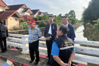 ผอ.ศูนย์ดำรงธรรมระยอง ลงพื้นที่เก็บตัวอย่างน้ำเสียสีดำ หลังชาวบ้านร้องพบต้นทางจากศูนย์กำจัดขยะครบวงจร