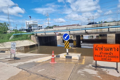 ราชบุรี ผู้นำชุมชนร้องขอให้แขวงการทางช่วยหาทางระบายน้ำ หลังอุโมงค์ทางลอดน้ำท่วมสูง