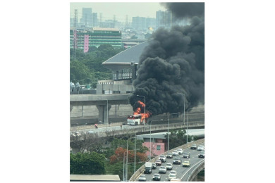 รถทัวร์ไฟลุกบนทางพิเศษศรีรัช เหนือสถานีกลางบางซื่อ รถติดหนักมาก