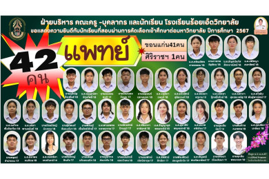 "รร.ร้อยเอ็ดวิทยาลัย" แสดงความยินดีกับนักเรียน 42 คน สอบเข้ามหาวิทยาลัยในคณะแพทยศาสตร์