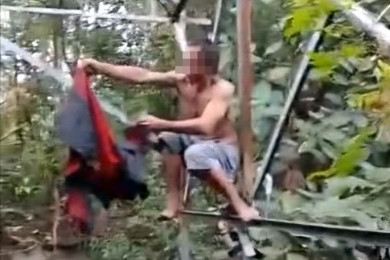 ผญบ.เผชิญหน้าคนร้ายลักตัดเหล็ก สายไฟป้ายโฆษณากลางวันแสกๆ