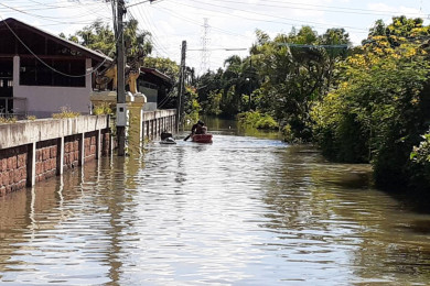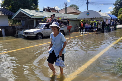 มวลน้ำยังไหลท่วมเมืองลำพูนหลายพื้นที่ ใน อ.เมือง ต.หนองช้างคืน สูงขึ้น 20 เซ็น เร่งขนของขึ้นถนน