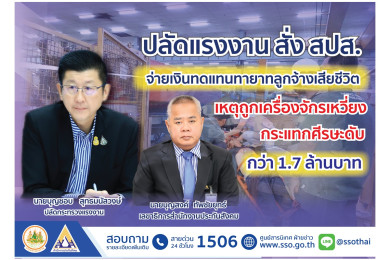 ปลัดแรงงานสั่ง สปส.จ่ายเงินทดแทนทายาทลูกจ้างเสียชีวิตถูกเครื่องจักรเหวี่ยงกระแทกศีรษะดับกว่า 1.7 ล้าน