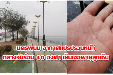นครพนม อากาศแปรปรวนหนัก กลางวันอุณหภูมิสูงเกือบ 40 องศา ช่วงเย็นเกิดพายุลูกเห็บถล่ม