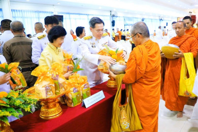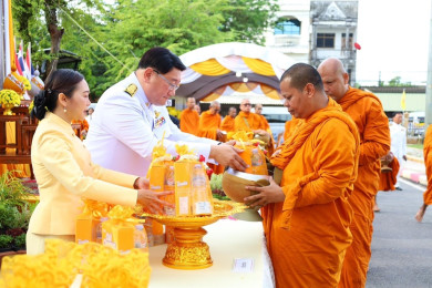 ผู้ว่าฯศรีสะเกษ นำพสกนิกรตักบาตร และวางพวงมาลาน้อมรำลึกในพระมหากรุณาธิคุณ "วันนวมินทรมหาราช"