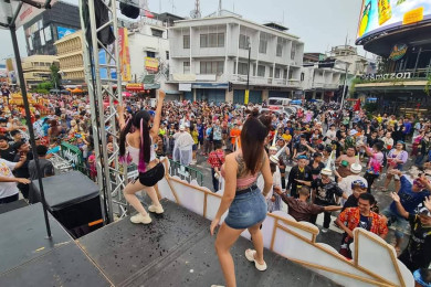 "แอนโทเนีย โพซิ้ว"ร่วมเล่นสงกรานต์ส่งท้ายปีใหม่ไทยนำนทท.นับแสนเล่นคลื่นมนุษย์บนถนนข้าวเหนียว