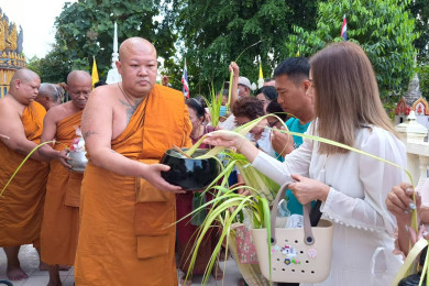 บรรยากาศพุทธศาสนิกชน ชาวตะเคียนเตี้ย ร่วมสืบสานประเพณี "ใส่ข้าวต้มลูกโยน"ทำบุญตักบาตรเทโว หลังวันออกพรรษา ปี 2567