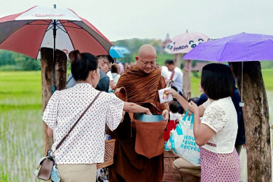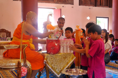 คึกคัก!พุทธศาสนิกชนร่วมถวายถวายผ้าอาบน้ำฝนและจตุปัจจัยภิกษุ-สามเณรในช่วงจำพรรษาวัดพระยาสุเรนทร์