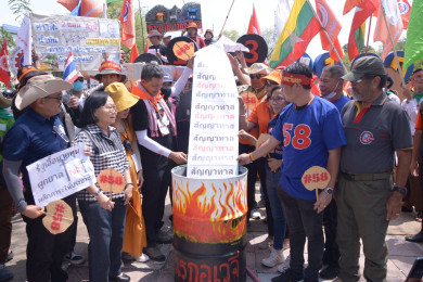 สรส.และกลุ่มผู้ใช้แรงงานเผาหนังสือสัญญาทาสหน้าทำเนียบ และเรียกร้องค่าแรงขั้นต่ำ 712 บาทกับรัฐบาลใหม่