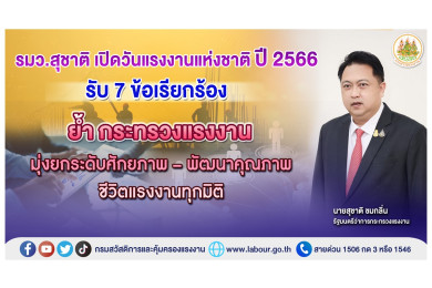 "รมว.สุชาติ" เปิดวันแรงงานแห่งชาติปี 2566 รับ 7 ข้อเรียกร้อง ย้ำกระทรวงแรงงานมุ่งยกระดับศักยภาพ-พัฒนาคุณภาพชีวิตแรงงานทุกมิติ