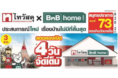 "ไทวัสดุ" ฉลองเปิดสาขาที่ 73 “ไทวัสดุ x บีเอ็นบี โฮม สาขาสมุทรปราการ” สัมผัสกับขบวนสินค้าวัสดุก่อสร้าง-ของแต่งบ้านแบบจัดเต็ม 3-6 ส.ค.66