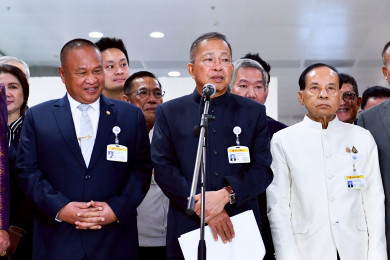 "ปธ.วุฒิ" นำคณะแถลงเรียกร้อง "รัฐบาล" เปิดประชุมร่วมรัฐสภา ถกปม "ไทย-กัมพูชา" ต้องเร่งทำ เหตุสถานการณ์เปลี่ยนทุกวัน
