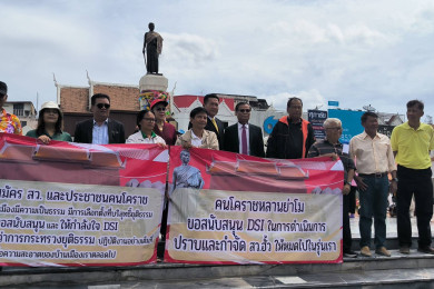โคราชเดือด กลุ่ม สว.สำรอง ชูป้ายหนุนดีเอสไอ ปราบฮั้วเลือกตั้ง สว. ขอพรย่าโม สาปแช่งคนทุจริตได้รับกรรม