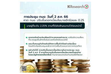 ศูนย์วิจัยกสิกรฯเก็ง กนง. 2 ส.ค.นี้ขึ้นดอกเบี้ยอีก 0.25% ปิดจบวัฎจักรขาขึ้น มอง ศก.ครึ่งปีหลังยังฟื้นต่อเนื่อง