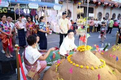 กองเรือปฏิบัติการฐานทัพเรือพังงา ร่วมพัฒนาวัดก่อเจดีย์ทราย เตรียมพร้อมเทศกาลสงกรานต์แบบวิถีไทย
